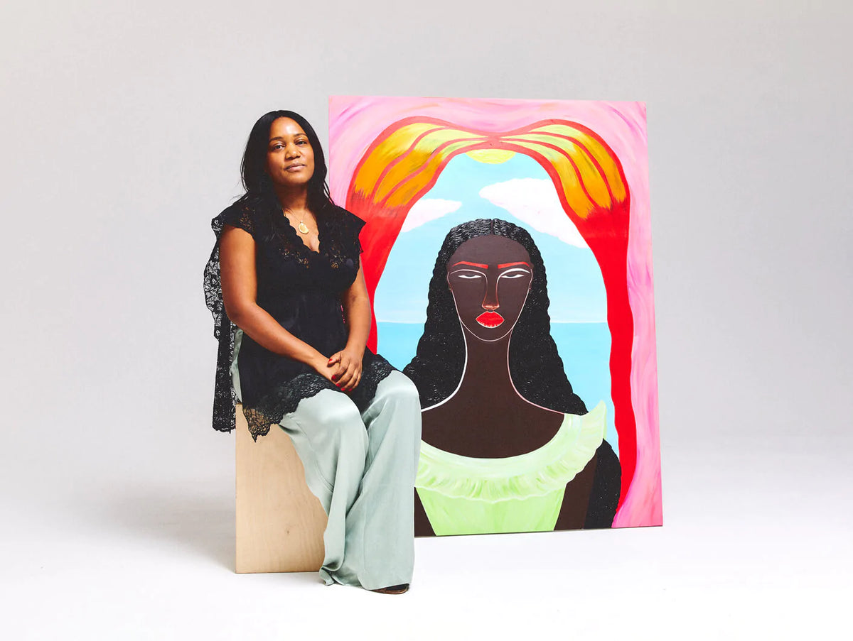 As a birthday present, I received a DNA test and it connected me to my roots much deeper. Being Black is beautiful but finding out what parts of Africa and tribes you’re from is such an eye-opening gift. As I got sober around that time, I decided I was going to quit the job, stop cutting my hair and dress the way that felt right. I wanted to let go of all these things I was holding on to and find happiness. I started painting abstract one day and making ten paintings a year. But after that DNA test, I thought the abstract stuff wasn’t really working for me, so I started painting faces. I was painting people that I saw were my people and started focusing on Diaspora and hair and the roots of it. As I was able to compose the artworks, I was able to connect with my culture and people more intimately.