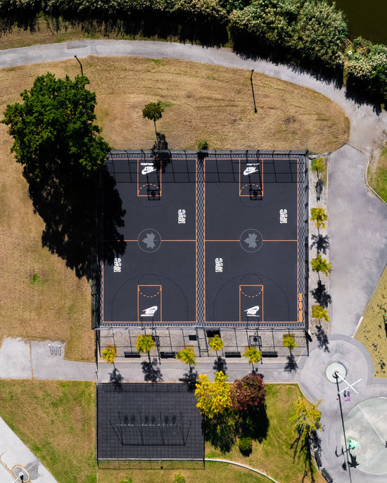 Inspired by our hometown team, we have refurbished and redesigned the two courts at Triassic Playground in Flushing. With the help of Nike & the NYC Parks Dept, this restoration includes a new surfacing with custom paint, as well as new backboards and nets.