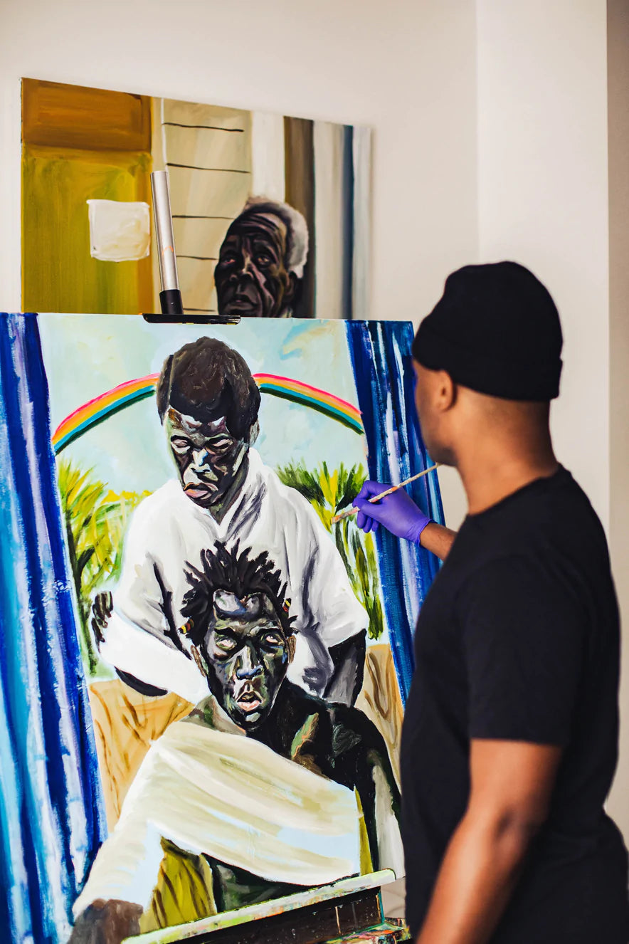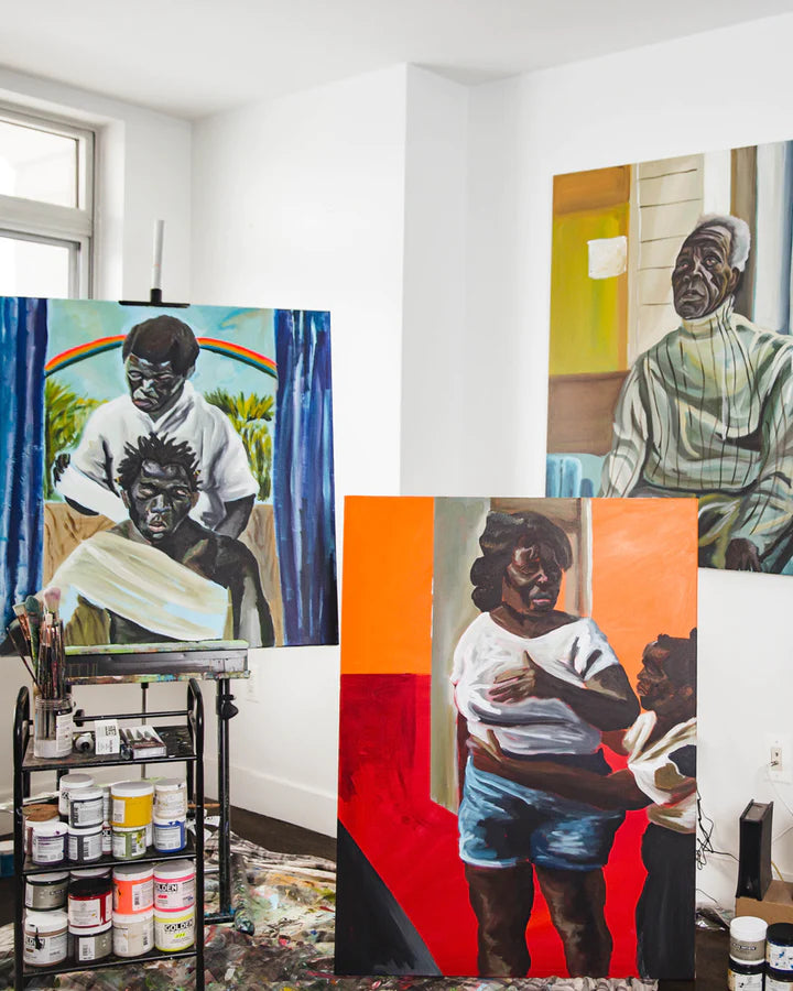 GB: I want to talk about responsibility for a moment. In my career, I realized I have a responsibility as a Black designer to show other young upcoming designers that it's possible to do what I do. When I look at your work, it seems to me like you’ve fully taken on the responsibility of being a Black artist and being a teacher. The stories you depict in your work are unapologetically Black, showing the beauty and the chaos that surrounds us too. You even described your work as ideas of power through portraiture which I thought was extremely profound. Do you feel like we as Black creatives have a responsibility to show the next generation that our careers are actually possible?