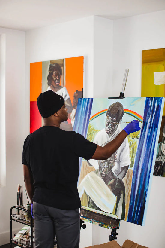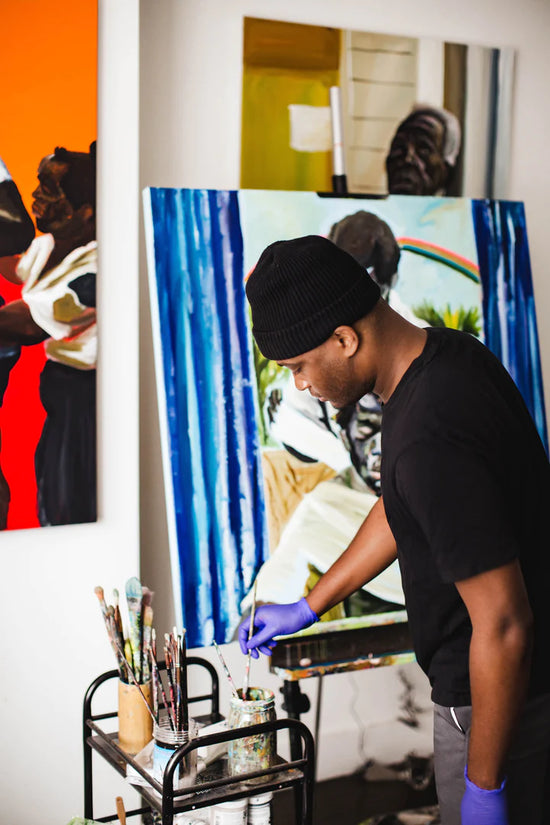GB: I'm not sure if I first discovered you on the explore page or through an art forum but I do remember being completely amazed by your work. Not only is your work cohesive in terms of the tone and feeling, but as a Black man, your work is very relatable. Whether you're painting a self-portrait or a specific moment in Black history, they all seem to be excerpts from the same ongoing novel of life in Black America. When did you find your particular style or how did this style find you?